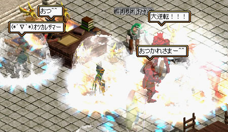 くびれさんの烈火がWIZにうまくキマりまくったのと、向こうが完全に体勢を整える前に攻撃したので一気に逆転したようです。