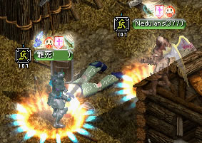 さすが根性。ちび以外のギルメンさんたちのすばらしい働きにより、先制点!