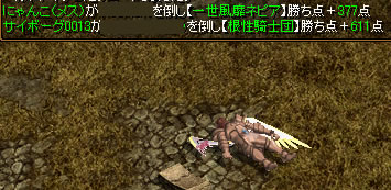 ということで、ぼへーっとディスペしていたら、にゃんさんに倒された!!