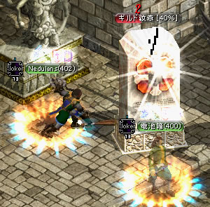 でんと二人で、紋章をなぐりまくりです。