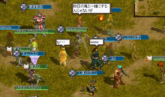 そんなとりとめもないことをぼんやり考えながら、キムとじんと、テイムするのによさげなMobについて話したりしながら、ぐだぐだと過ごしていたのだけど。