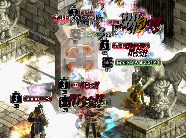 ここは、一応PT狩場なので、「いれてください」って来たギルメン以外の人も一緒に狩りしてます^^