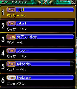 自分、入った時点で6人PTだったんだけど、こんな感じでした。