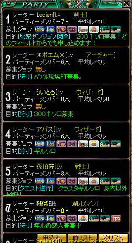 んで、ぴーもPT募集欄がみたいってことで、ぴーがPTを一時脱退して、PT募集をみにいく。