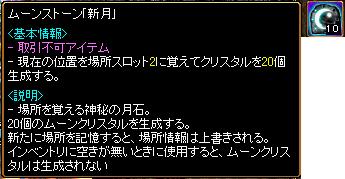 いや、正直、目からうろこでした。自分はムーンストーンはムーンクリスタルを食って発動するのかとずっと思っていたのだけど、ムーンクリスタルだけでいけるものなんだね。